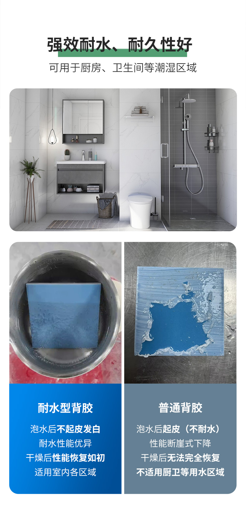 美易涂背胶强效耐水型由特种高品质聚合物乳液为主要原材料,配以多种专用助剂而成。该产品适用于瓷砖背面处理,可缓冲瓷砖胶/水泥砂浆与瓷砖之间因收缩而产生的应力,对瓷砖胶与瓷砖之间的粘结起到很好的过渡作用,能有效减少空鼓,降低掉砖风险。